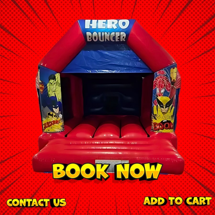 Our bouncy castles are delivered, set up, and collected by our friendly team, ensuring a hassle-free experience for you. We pride ourselves on cleanliness and safety, so you can rest easy knowing that your superhero-themed inflatable is ready for non-stop fun.