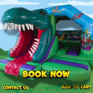 Dinosaur Bouncy Castle with Slide Hire Sheffield | Inflatable Dino Castles for Kids & Families