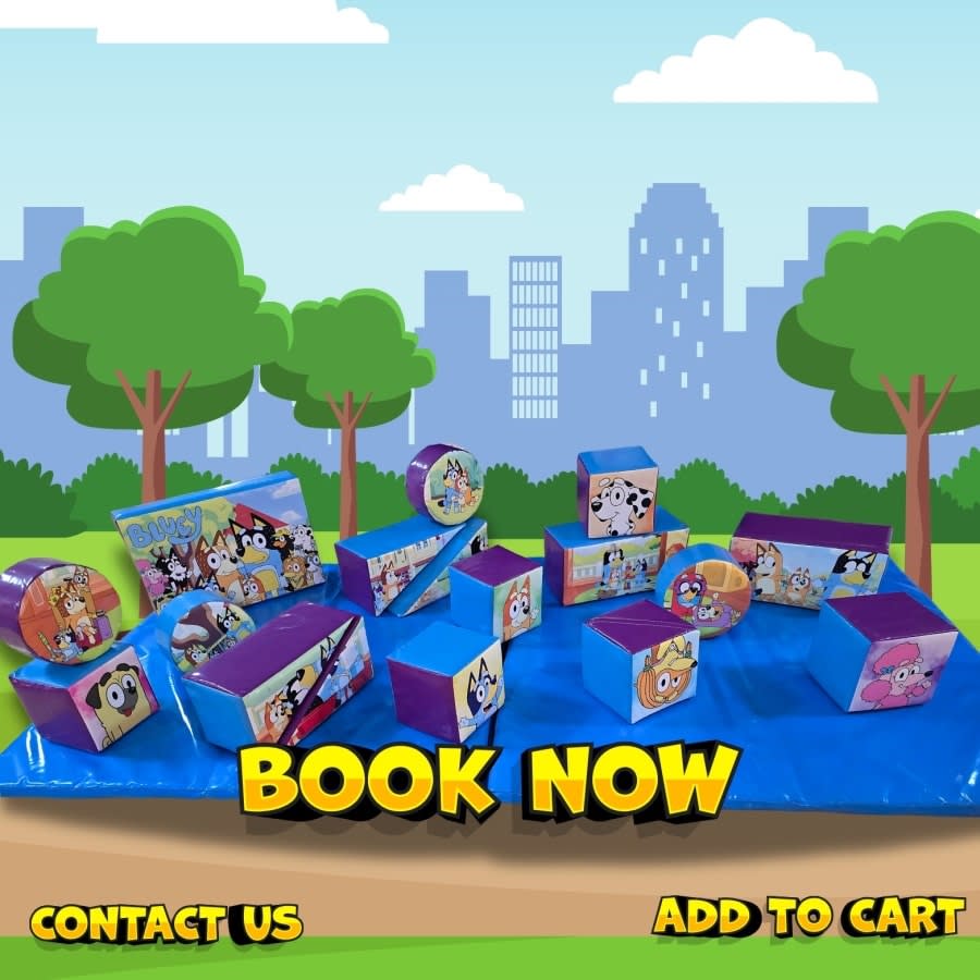 Our Bluey inflatables & soft play near me can be set up indoors, and most include rain covers for outdoor events in Sheffield.